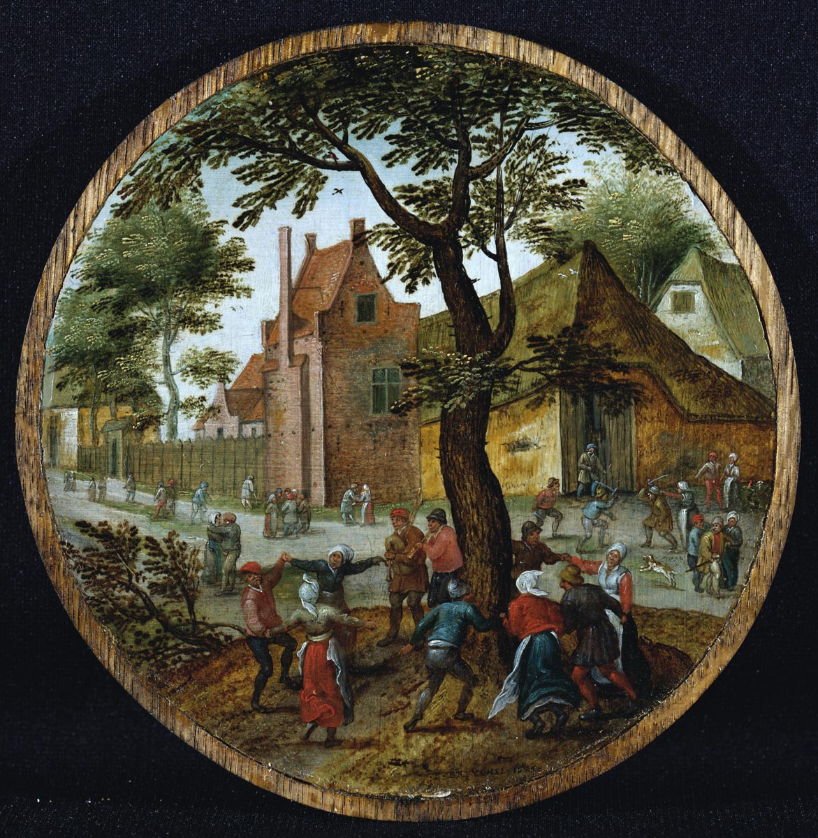 Peasants dancing around a tree in a village street