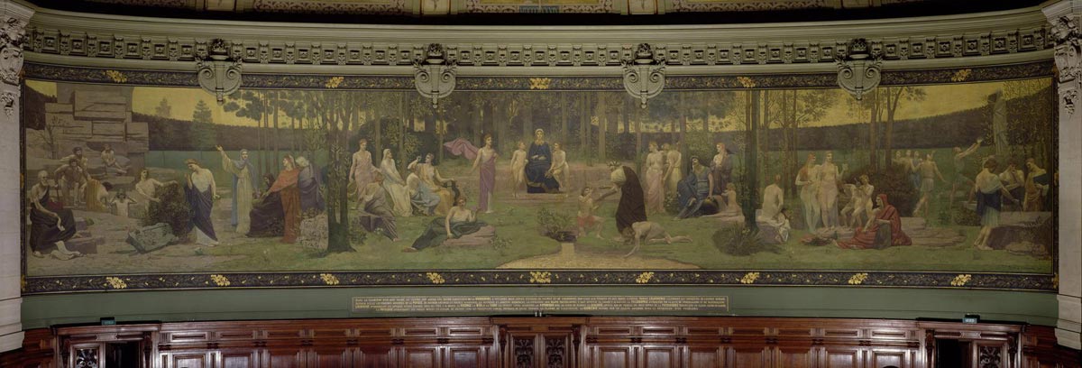Title: The Sacred Wood, mural in the Grand Amphitheatre depicting allegorical figures of the Sorbonne, Eloquence, Poetry, Philosophy, History, Botany, Geology, Physics and Geometry